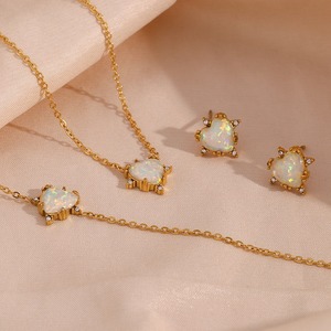 Colorido impermeable piedra Natural flor gota Cadena de acero inoxidable collar estético tobillera conjunto moda Collar joyería Mujer